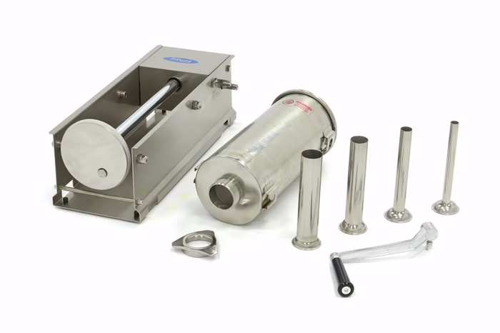 Vorstide käsitsi valmistamine võib olla pikk ja keeruline protsess. Selle kiirendamiseks võiksite võtta appi vorstide täitmise seadme. Selle vertikaalse või horisontaalse mudeli eeliseks on see, et see võtab teie töölaual vähe ruumi. Seade on standardselt varustatud nelja täitetoruga, mille läbimõõt on 16, 22, 32 ja 38 mm. Vorstide valmistamiseks libistage lihtsalt vorsti kest täitetorule ja vändake vorstimass selle sisse. Tänu surveplaadil olevale tuulutusavale satub vorstide sisse valmistamisel võimalikult vähe õhku. Surveplaat on samuti suletud tihendiga. Masina küljel oleva väntmehhanismi abil saab vorste täita kontrollitult kahel kiirusel.